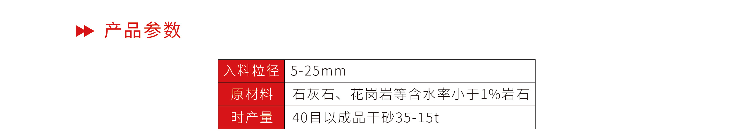 原材料 石灰石、花崗巖等含水率小于1%巖石