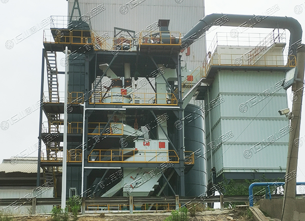 原料經(jīng)過電子秤進(jìn)入到皮帶輸送機(jī)中,由全封閉的提升機(jī)將物料入到五孔碾磨制砂機(jī)內(nèi)進(jìn)行破碎處理,再由空氣篩對(duì)破碎后的物料進(jìn)行篩分、選粉處理,篩分后的較大物料會(huì)返回五孔碾磨制砂機(jī)中進(jìn)行二次破碎,符合要求的砂子則由傳送帶輸送至成品倉中;篩分過程中的粉塵會(huì)經(jīng)粗細(xì)粉分離機(jī)進(jìn)入到布袋收塵器內(nèi),而其中較大的粗顆粒會(huì)在粗細(xì)粉分離機(jī)的作用下,按需求在成品砂中進(jìn)行回?fù)?,?xì)粉塵將通過風(fēng)力進(jìn)入到布袋收塵器,作為副產(chǎn)品進(jìn)行使用。